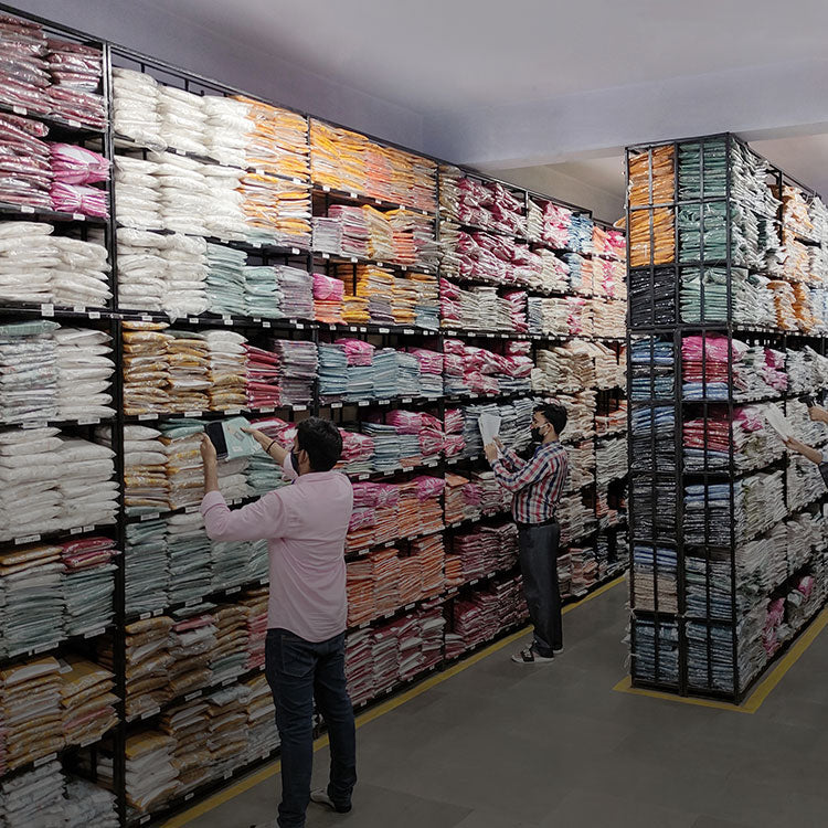 Is a dedicated 15,000 sq.ft. area with a storage capacity of 3.5 lakh pieces. With a team of 100+ workers and erp, real time technology, it is capable of processing 8 to 10K units daily