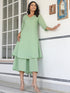 - This green dobby cotton a-line kurta with culottes pant set is a perfect mix of style and comfort. The kurta features a flattering v-neck, an easy-flowing a-line silhouette, and a functional side pocket. Paired with matching culottes, this set offers a breezy yet chic look, ideal for effortless everyday elegance.