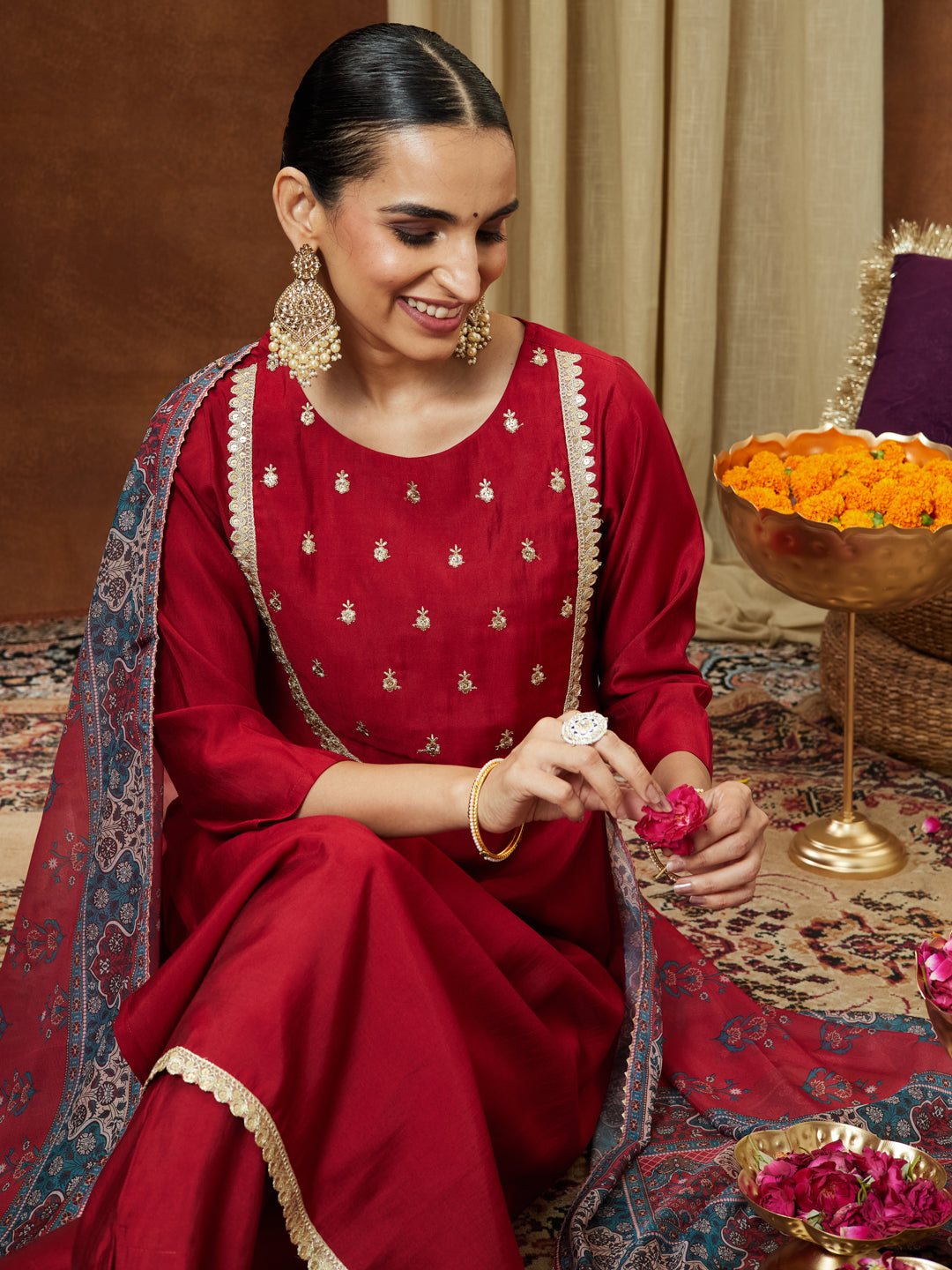 - Kurta Color : Maroon | Pant Color : Maroon | Dupatta Color : Maroon