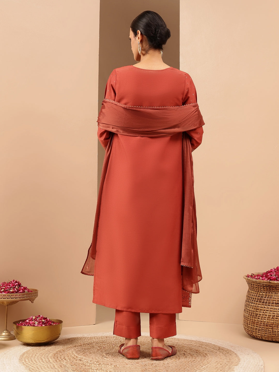 - Kurta Color : Rust | Pant Color : Rust | Dupatta Color : Rust