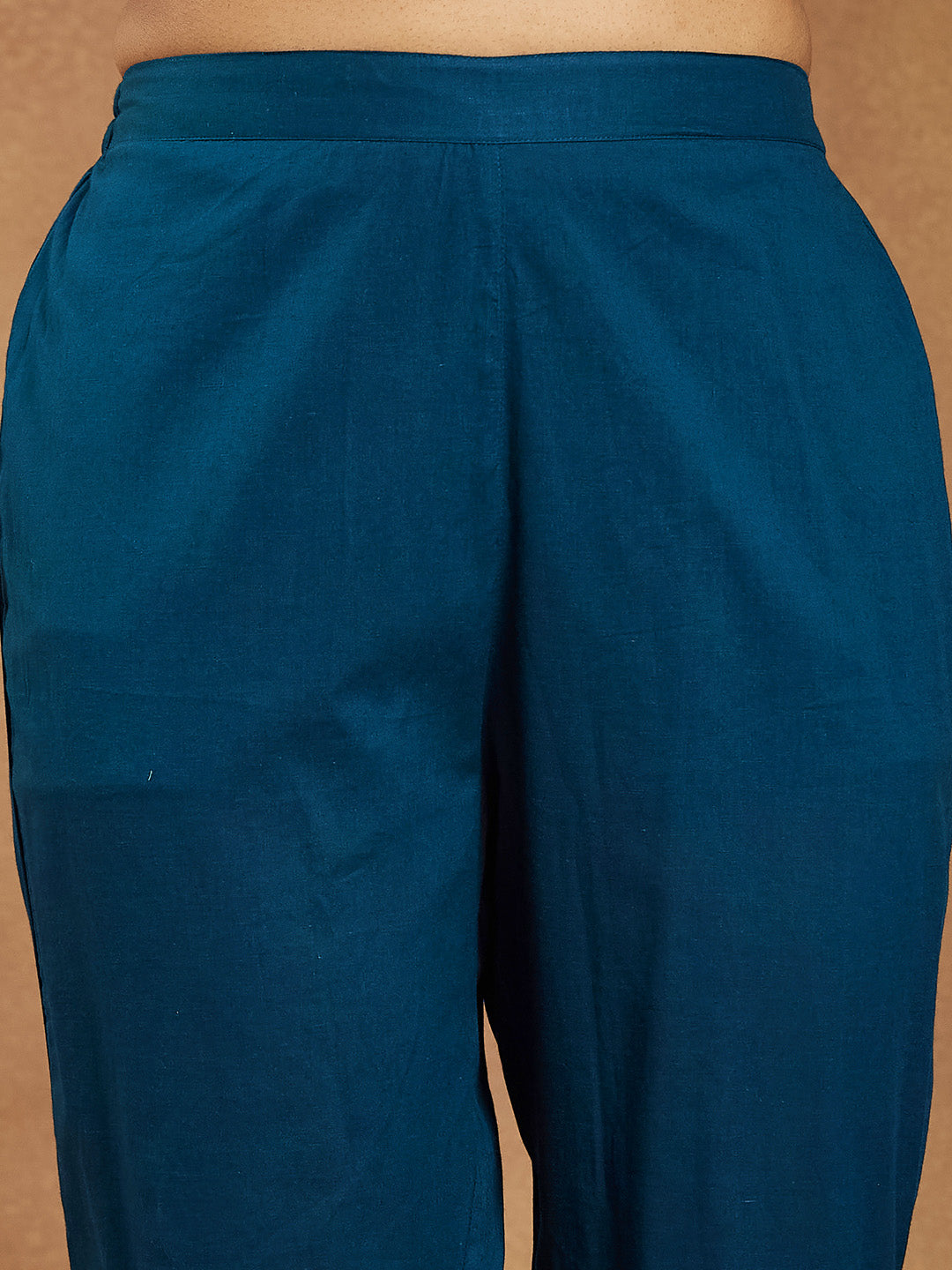 - Elevate your ethnic style with this graceful teal cotton a-line kurta set from janasya, thoughtfully designed for elegance and ease. The set features a flowy a-line kurta adorned with delicate contrast white piping placed vertically from princess seam to the end, wooden buttons at the front yoke, and soft gathers under the yoke, enhancing its feminine silhouette. The kurta comes with a notched round neckline and three-quarter sleeves. A functional side pocket adds utility to the design. Paired with narrow cotton solid teal pants, this ensemble ensures a clean and comfortable fit. The mull dupatta in contrasting white floral printend matching printed scrunchie completes the set. Pair this outfit with silver oxidized earrings, and tan kolhapuris or juttis to complete your festive day look.