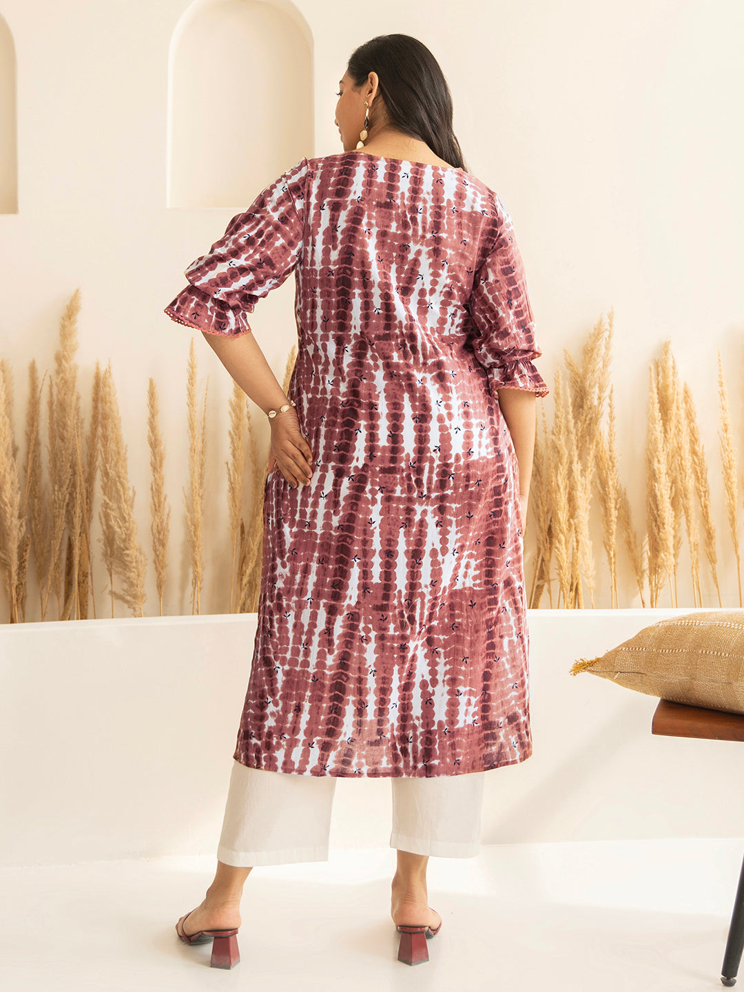 Light Brown Cotton Tie-dye Printed Straight Kurta